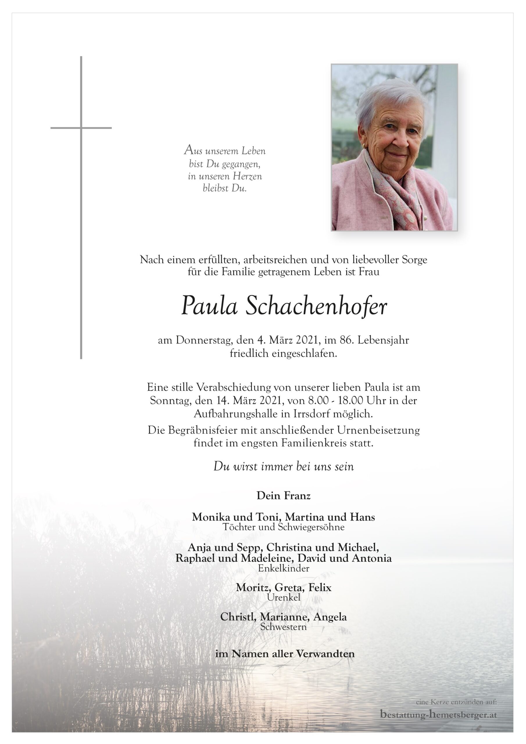 Liebe Paula, du bist angekommen. Nun ist auch dein Franz bei dir und ihr dürft gemeinsam in Frieden ruhen.