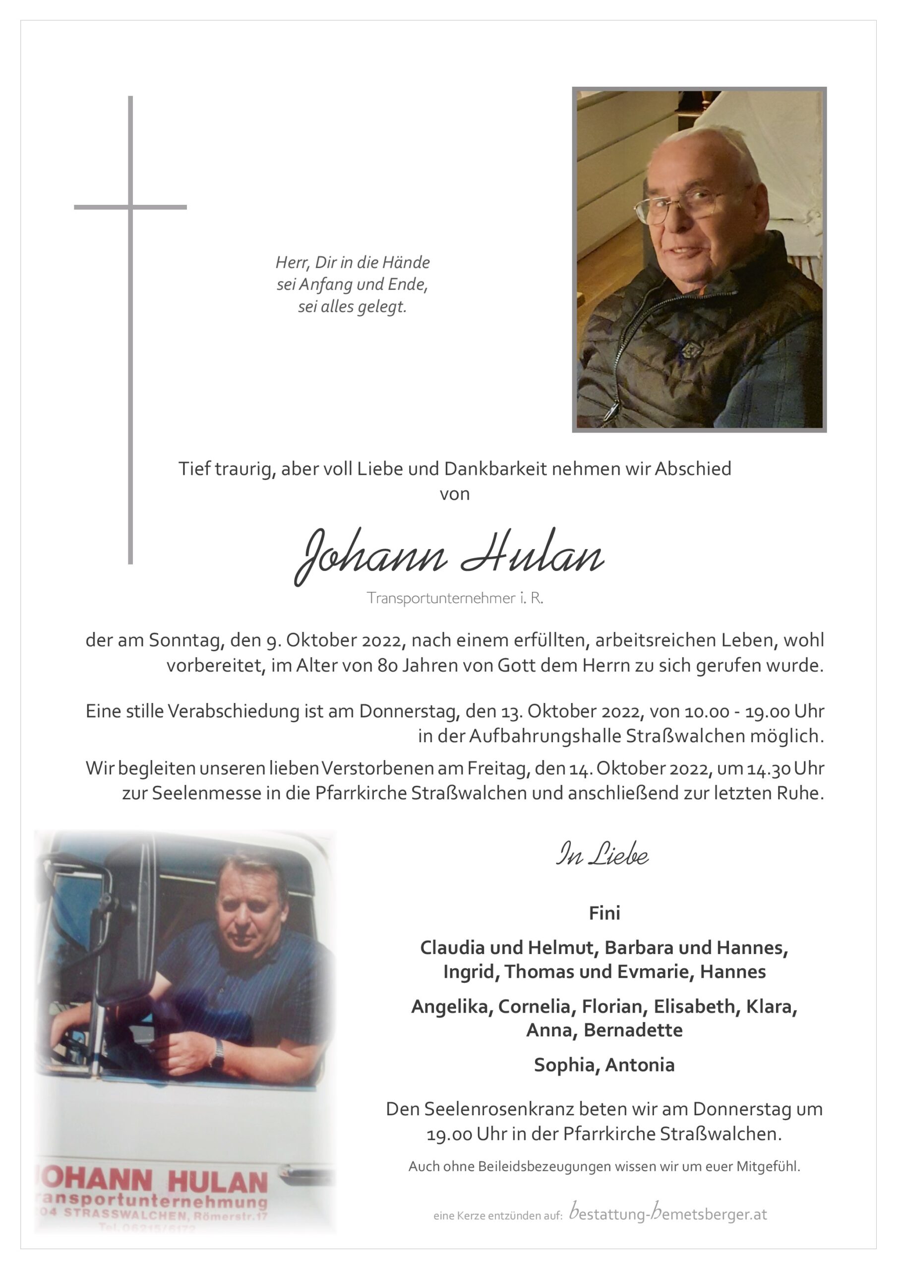 Für unseren „Huli“ ein letztes Licht für Deine Reise. Es war schön das wir Dich als Nachbarn hatten .. mit Witz und Humor… und das schönste für uns Kinder war, wenn wir mit dir mal eine Runde im Lastwagen mitfahren durfte. Danke dafür! Liebe Fini, Claudia, Barbara, Thomas, Hannes und Ingrid – viel Kraft für die schwere Zeit !
