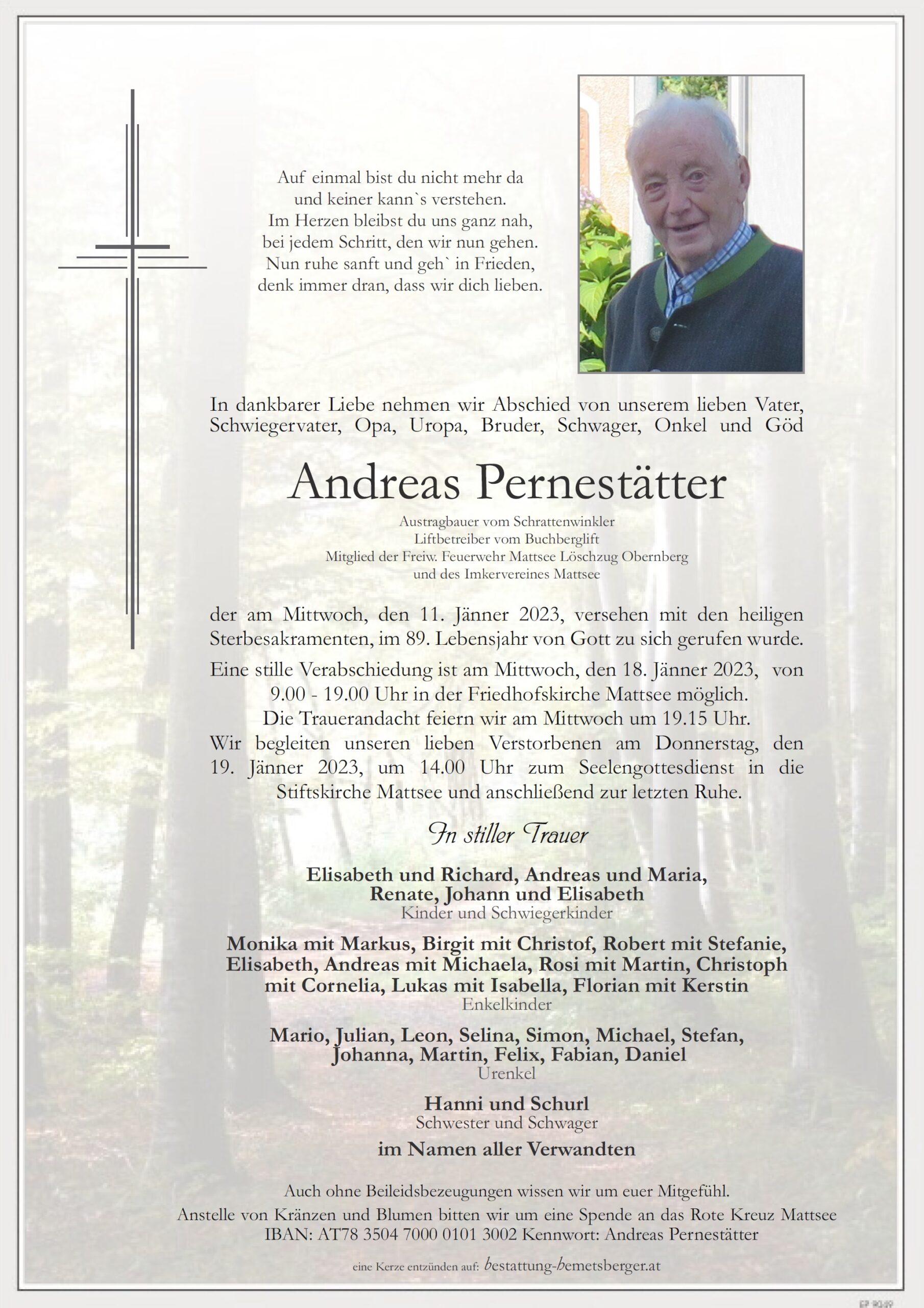 Das ewige Licht leuchte dir, lieber Andre, ruhe in Frieden. Unser herzlichstes Beileid den Angehörigen. Franz und Mathilde Handlechner