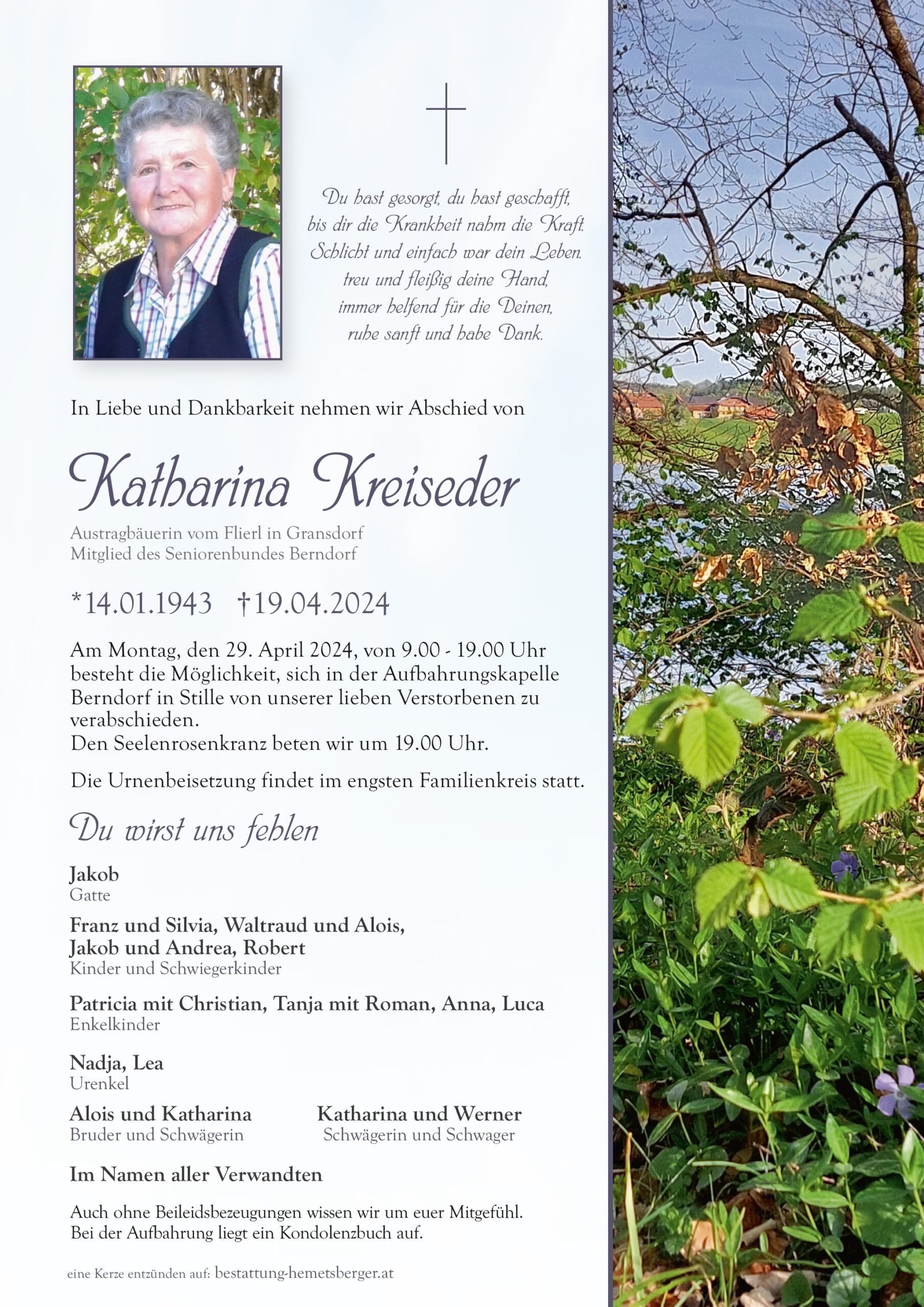 4. Aufrichtige Anteilnahme der Trauerfamilie Fam.Kreiseder Bauer Feichten