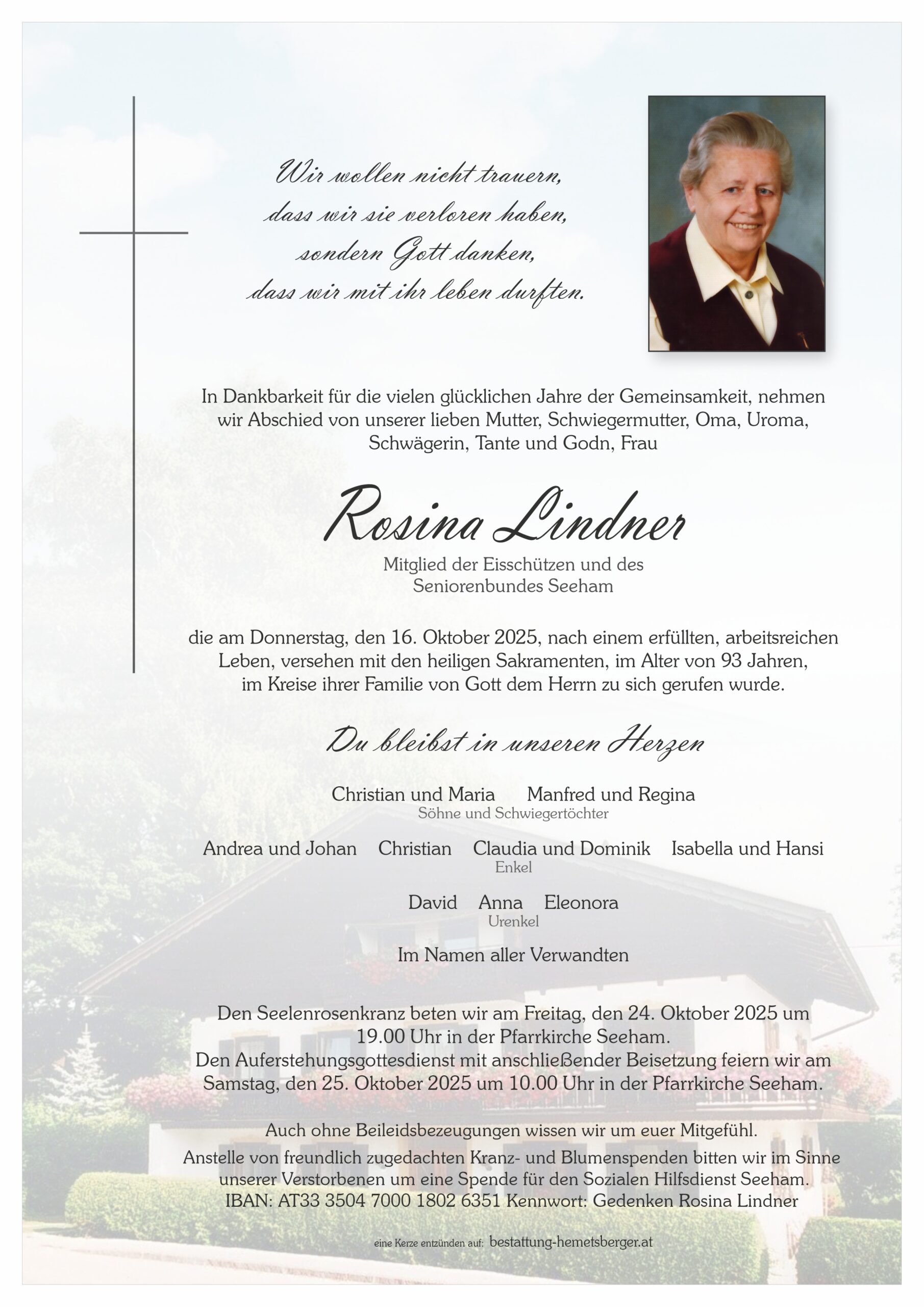 Ein herzliches Beileid an die Trauerfamilie und viel Kraft in der schweren Zeit. Liebe Rosi, ruhe in Frieden . Susanne Sperl mit Familie