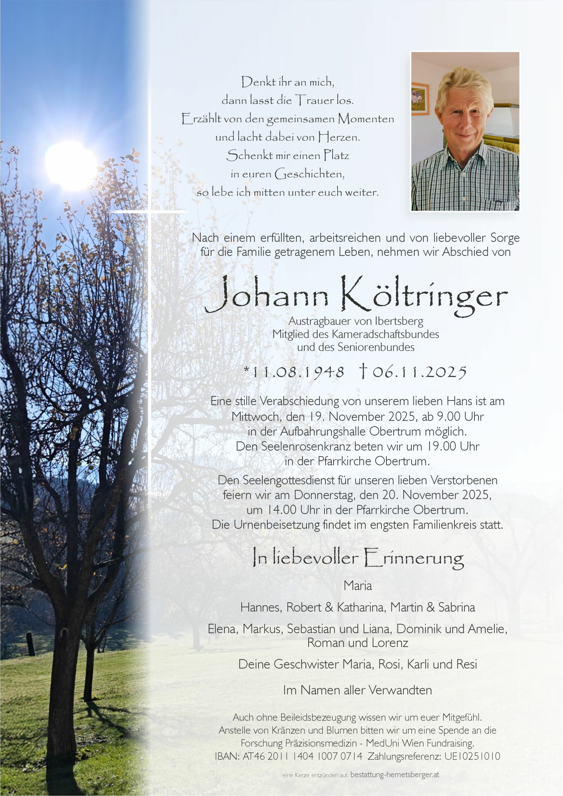 Hans war ein Mensch mit Leidenschaft, ob auf dem Rad, in der Natur oder auf seinem Hof. Er hat das Leben mit offenen Augen und großem Herz gelebt.