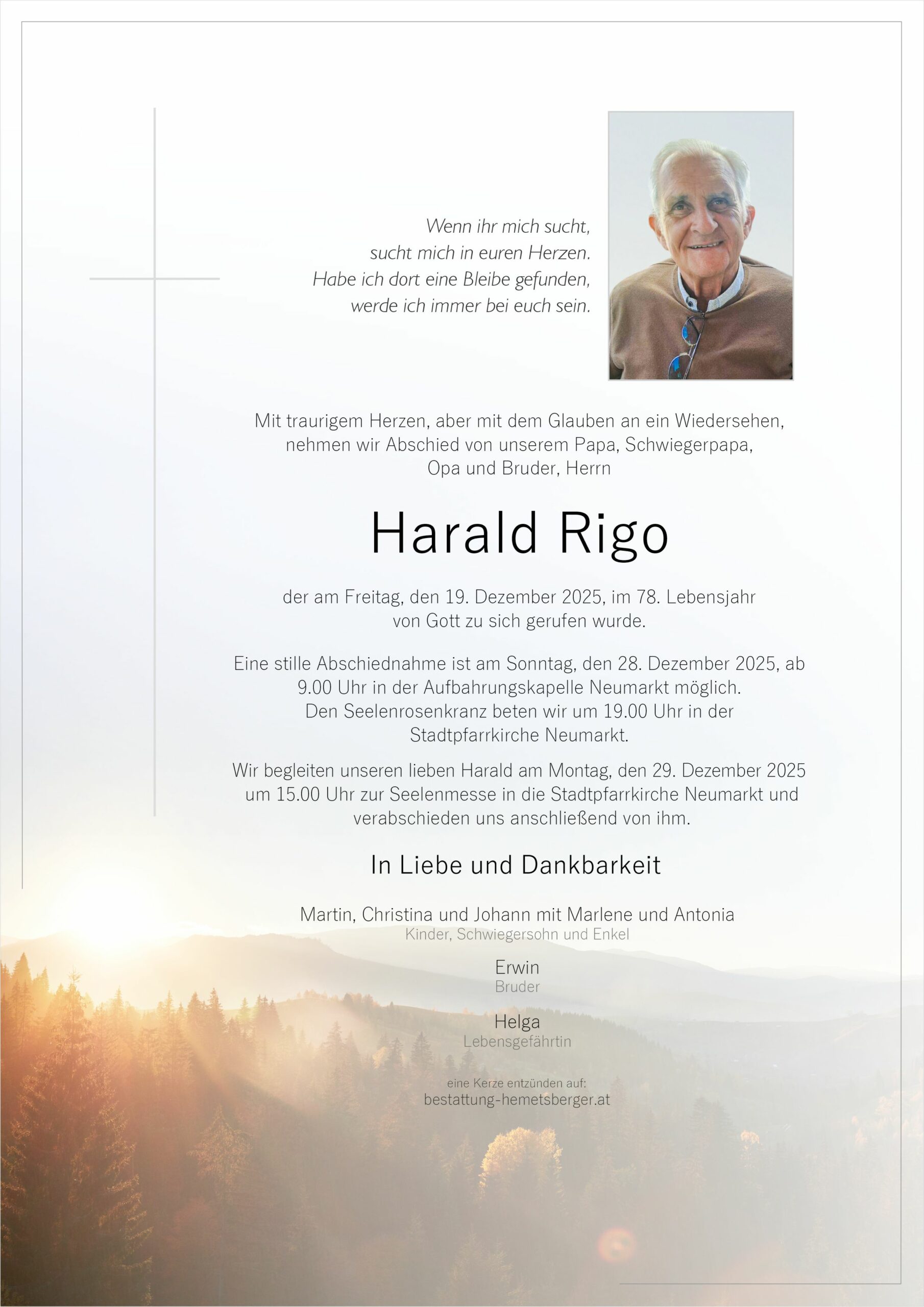 Lieber Harry! Ein Licht soll dich auf deine letzte Reise begleiten! Du wirst mir immer als guter Freund und Nachbar in Erinnerung bleiben. Ein aufrichtiges Beileid den Angehörigen, Norbert Leitinger