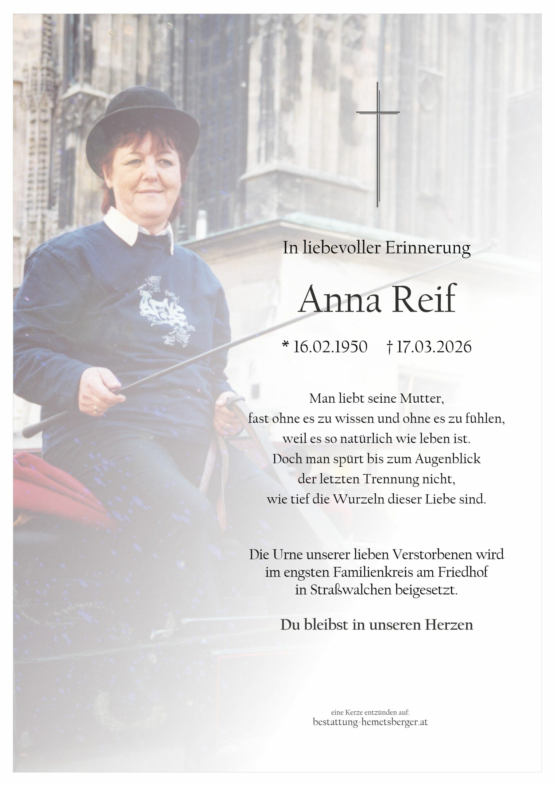 Ruhe in Frieden liebe Frau Reif, mein aufrichtiges Beileid!